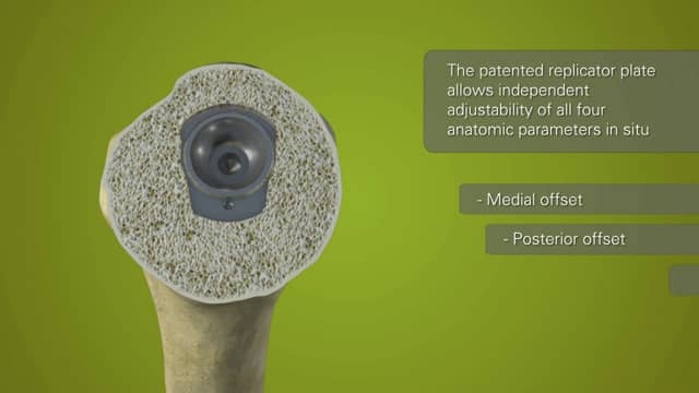 Zwei Exzentrizitäten (Kopf und Replikatorplatte) erlauben zudem die individuelle Einstellung des medialen und posterioren Offsets und somit eine anatomische Ausrichtung des Humeruskopfes.2-4
